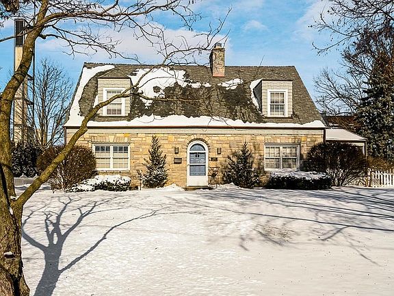 Absolutely darling cape cod - stone and cedar - situated on a rare double lot with picket fencing. Beautiful original plaster detailing in a few of the ceilings, large living room with stone fireplace, original oak floors, kitchen with SS, granite and cherry cabinetry open to gathering room/dining space. Bedrooms are spacious with good closet space. Finished lower level includes family room, bedroom and full bath - perfect for teenager or guest. See A2A remarks.