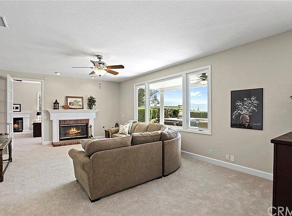 Spectacular home with a fabulous floor plan and breathtaking views! Located on a single-loaded cul-de-sac is this impeccable home with newly remodeled kitchen and bathrooms. Light-filled and spacious, every room welcomes you in. Highlights include a main floor conservatory with built-ins and fireplace perfect for a game or bonus room, oversized family room with adjacent island kitchen, convenient main floor en suite bedroom, voluminous master retreat with balcony and spa-like bath, and remarkable princess suite. Quality craftsmanship and finishings can be found throughout in the intricate crown moldings, glass mosaic kitchen backsplash, stone-infused bathrooms, new designer carpet and neutral paint palette. Gorgeous rear yard features panoramic canyon and city light views, large pool and spa, oversized barbecue island, lounge areas, covered dining and lush grassy lawns. Completed by a 4-car garage, this incredible residence is zoned for Yorba Linda High School and has the location, floor plan and views you have been waiting for!
