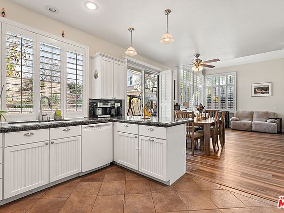 Discover this well-maintained home in the desirable Northpark community of Valencia. With 4 bedrooms, 3 bathrooms, and 1,763 square feet of living space, this property also includes a 3-car garage with built-in storage for added convenience. Inside, the light-filled living room features high ceilings, wood flooring, and a fireplace. The main floor includes a bedroom, a bathroom, and a separate laundry room with cabinets and a pantry for extra storage. The kitchen offers plenty of cabinet space, granite countertops, a breakfast bar, tile flooring, and a dining area, making it a great spot for family meals. The family room, complete with a dual-sided fireplace, opens to the private backyard. Upstairs, you'll find three bedrooms, including the primary suite with high ceilings, an en-suite bathroom, a walk-in closet, dual sinks, a soaking tub, and a separate shower. Additional features include ceiling fans in all bedrooms, double-pane windows, and window shutters. The backyard is spacious with a patio and a grassy area, ideal for outdoor enjoyment. The Northpark community provides access to amenities such as three pools, a spa, a clubhouse, tennis courts, a park, and a BBQ area. Conveniently located near shopping, dining, paseos, and top-rated schools, this home offers a comfortable and convenient lifestyle. Come take a look and see if this could be your next home!