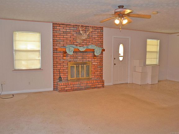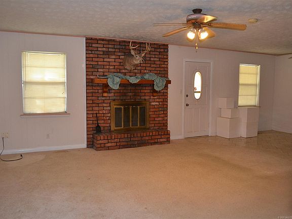 Spacious Brick home w/safe room at the edge of town! Just off Hwy 69 for easy commute! Formal living + den w/wood burning fireplace, master bedroom has his 'n hers closets and private bath w/shower. Lots of closets and storage throughout the house. Covered front porch and back patio for outdoor relaxation! Over-sized 2-car garage w/insulated doors and 2 openers. New safe room for protection from the storms.