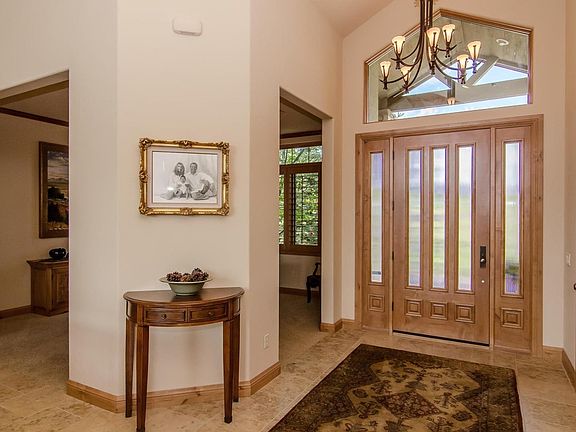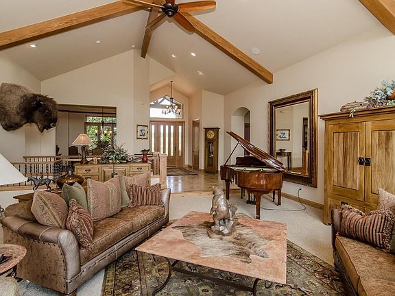 Quality abounds in this spectacular mountain contemporary in the coveted Spring Ranch Community. Enjoy your peace and quiet on 5.39 acres overlooking a lake and mountain views in the background. This home is timeless and was built with only the best of materials. The walls were hand troweled and window coverings are plantation shutters throughout. The main floor boasts a huge great room which shares a two way fireplace with the hearth room off the lovely, large kitchen. Alder Wood doors, cabinets and trim give the home the perfect mountain feel. The lower level lends itself to a variety of your favorite entertaining activities with it's cinema grade theater, pool table area, media area and lavish wet bar. Another two bedrooms, study and full bath will accommodate family and/or guests. The heating system is the very best radiant heat and the man of the house will love the heated, finished garage with its special doggy shower! The Sellers would like to negotiate many of the furnishings.