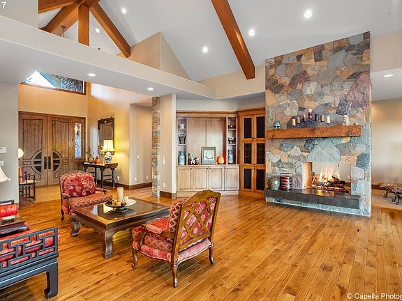 Magnificent Hilltop Estate on 5 Acres in Wine Country! State of the Art Custom Finishes & Open Beamed Lofty Ceilings. Approx 5000 SF on Main Level with Full Wheelchair Access. Gated Circular Private Drive. Copper Gutters. 2085 SF Guest House. 2nd Drive Leads to 5000 SF Heated Shop with 15 Car Garage. 60' Garage for Class A Motorhome. Office Space Suitable for In-Home Business. Mountain Views from Covered Porch! For the Car Enthusiast!