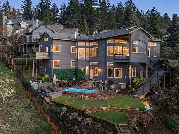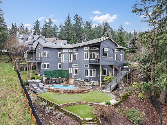 OPEN HOUSE SUNDAY, 5/18 FROM 1-3! Luxury is at the highest level in this impeccably appointed home! Ideal for entertaining and with great separation of space inside and out. Designed for formal and casual dining with a separate open-concept gourmet kitchen and adjacent living room. Floor to ceiling windows throughout the home bring the outdoors inside with incredible views of the Eugene Valley and Hawkins Heights Park. Multiple decks on every level of the home provide 180-degree unobstructed views of valley sunrise and sunset. The backyard boasts a large patio with jetted lap pool fueled by the cost-cutting solar panels, hot tub, and putting green off of the cozy family room. The family room is on level with the back patio featuring a wet bar, fireplace, access to the patio, and a full bath. The primary bedroom/ensuite is a separate, private oasis with a huge bath, step-in shower, large walk-in closet, fireplace, and balcony. The other bedrooms are on a separate level with their own large dual-sink bath. This home has everything you could ask for! Make an appointment to view it TODAY!