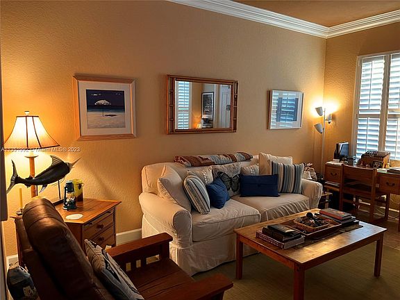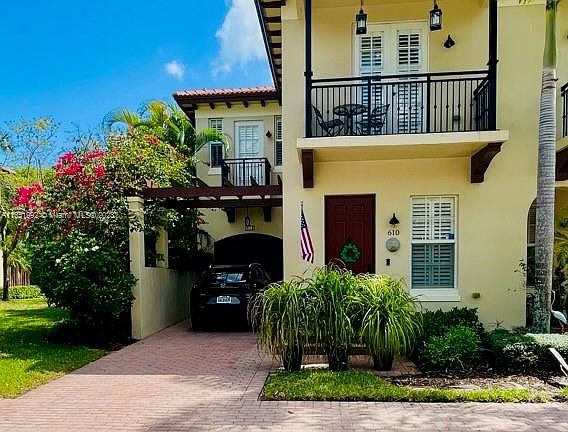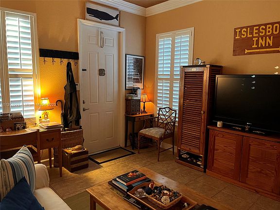 Welcome home to this stunning end-unit townhouse in the gated community of Ventura Greens. This home features plantation shutters throughout, crown molding, french doors to the patio, balconies off all three bedrooms, and dimmable lighting downstairs. The downstairs boasts ceramic tile floors, an open concept kitchen with soft closing drawers, and a gel flame fireplace. The primary bedroom has his and hers walk-in closets, a soaking tub, and a separate shower. Enjoy the new stove (2022) and microwave (2021), A/C from 2016, brand new water heater (2022), and Berber carpet upstairs. Relax outside in the Florida breeze with a retractable awning over the patio with a beautiful garden view and the Emerald dunes 6th fairway right behind. Prime location just minutes from shopping and dining!!