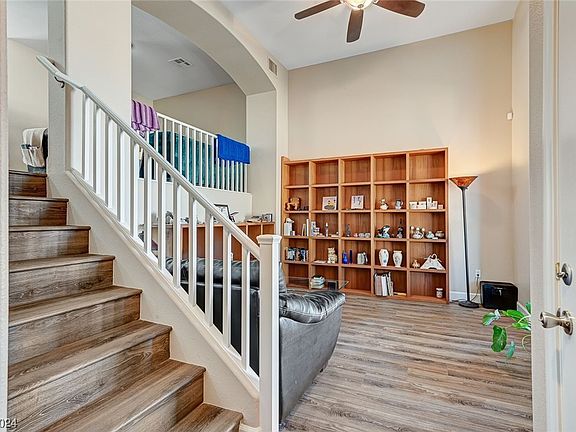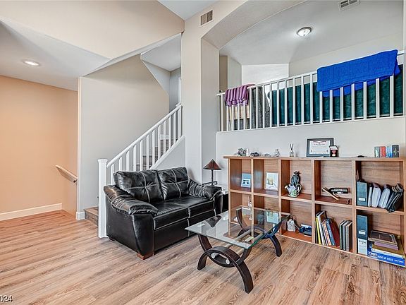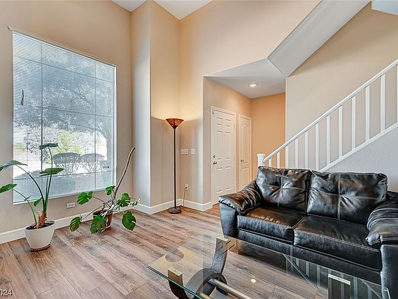 Welcome Home! This gorgeous Green Valley tri-level townhome is turnkey and has new luxury vinyl plank throughout, new interior paint and 5" baseboards, updated bathroom light fixtures and much more. Excellent layout with 1st floor living area and second floor loft/living area. Large eat-in kitchen and dining room. Loads of cabinets for storage. Upstairs laundry area is convenient to the bedrooms. No front neighbors. Two-car garage with entry to the home. Open, bright & light with the soaring ceilings in living room when you enter. NO CARPET anywhere in the unit. Gated community with community pool & spa, where HOA maintains roof, stucco & paint. Conveniently located near shopping, airport and the Las Vegas Strip.