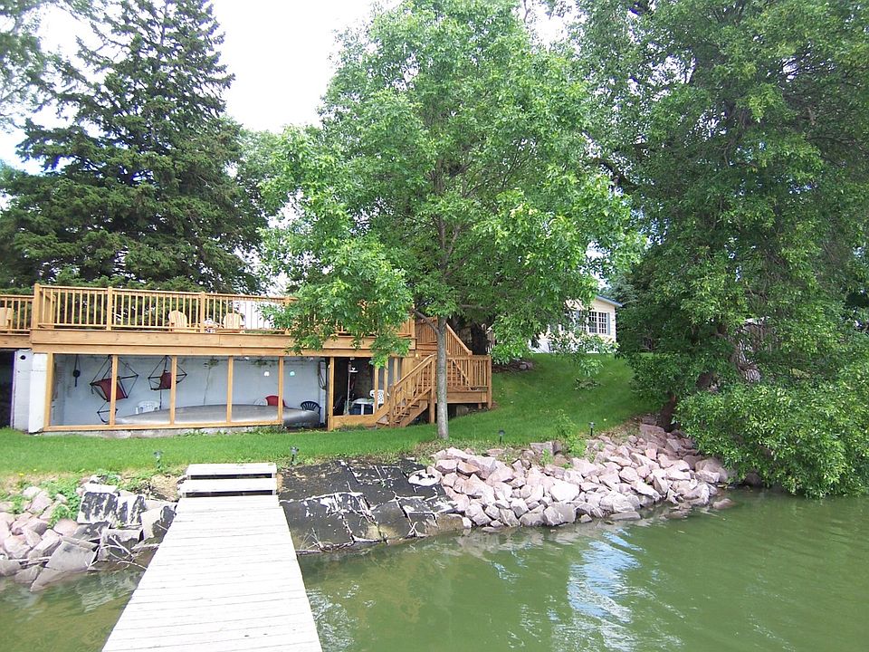 This is a great opportunity to own a year round lake home on a huge private lot. 147' of shoreline, sprinkled, plus two fantastic decks. The interior has been completely updated with a great open kitchen / great room. The home is on rural water and has a private septic system. The 3 stall garage is finished & heated. All for only $169,900. New shingles on garage in 2011.