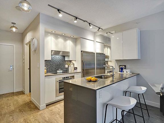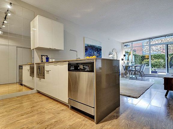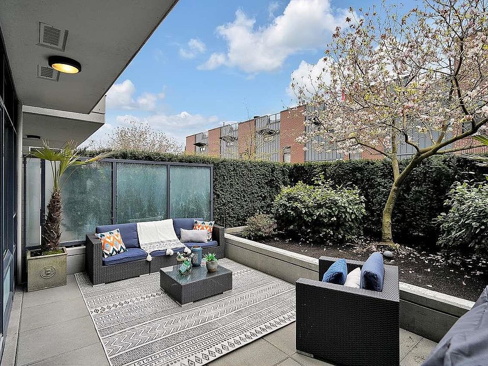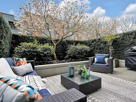 Summer Ready! Massive Sunny terrace patio Large One bedroom & DEN home in desirable Uptown. Upscale home that sits on the Quiet side of the building, private patio oasis surrounded by tall mature hedges that give extra privacy & your own cherry blossom Tree! Upgraded freshly painted home feat gourmet kitchen w/SS appls, stone waterfall counters, all rooms on a large scale that fit large furniture, functional open plan, bedroom w/walk thru closet, spa like ensuite, laminate flooring, built in closets, over height ceilings, floor to ceil windows w/ton of natural light. Fully equipped gym, spectacular rooftop & kids playground w/ 360 degree views. Convenient SoMa location in the heart of Mount Pleasant. Parking & Storage. Rentals & 2 dogs/cats okay. By appointment Sat & Sun Apr 23/24 1-3pm
