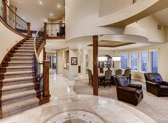 A triumph to modern architecture, this Ranch Reserve beauty sets the tone for luxurious golf course living in Colorado! Boasting 5 bedrooms and 7 bathrooms, this masterpiece radiates exceptional design, quality of construction and remarkable features throughout! The grand entry welcomes all to this stunning home and the elegant foyer amazes with custom glass, wood, wrought iron and beautiful Travertine tile! The world-class gourmet island kitchen offers a plethora of Viking stainless appliances, slab granite counters, custom cherry cabinets and opens to the fabulous family room! Explore the lower level entertainment area and enjoy your very own mini sports bar and media room! Your Master Suite beckons with a 3-sided fireplace and spa-like bath with contoured jetted tub and a huge steam shower! Whether sipping the first cup of joe or stargazing over a glass of vino, your private balcony provides solitude, overlooking the 6th fairway! 4-car garage, golf cart hut, and even a Nanny Suite!