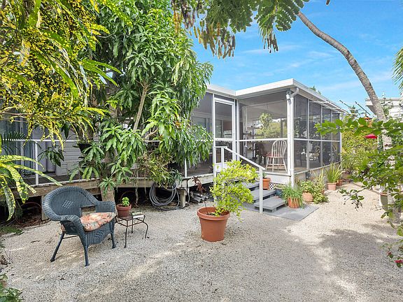A LUSH HAVEN AWAITS YOU AND YOUR BOAT ... the property is a tropical delight with well-planned vegetation that creates amazing privacy and pleasant sitting areas. Enjoy the area's fantastic fishing, kayaking and dive spots from the 46 ft. long concrete seawall with step-down dock and fish cleaning station. There's no ignoring the welcoming sense of peace that one feels stepping onto the 372 sq. ft. screened porch and inside the 2 bedroom/1 bath home. Meticulously updated and maintained, it's offered fully furnished except for personal items. Additional features include a wonderful outdoor shower that's accessible from the bathroom, cherry kitchen cabinets, separate shed plus additional storage, mango tree, orchids in the trees, and a water catchment system for the plants. There's even a raised garden in front if you're so inclined. This truly not a 'drive-by', you must come see for yourself to appreciate it. Check out the exterior/neighborhood video!