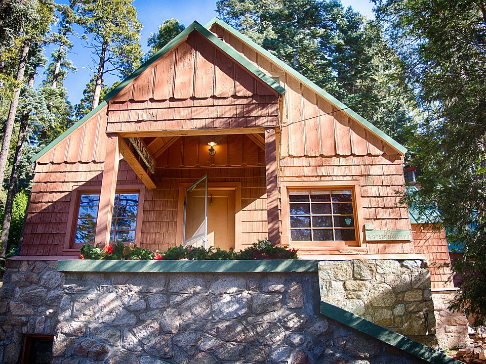 Rare Opportunity to own FULLY FURNISHED successful AirBnB Property WITH detached Guest House. 1929 Cabin in highly sought Crest Estates. Main House is 3 bedrooms, 1 bath with recently remodeled and expanded kitchen. The kitchen features gorgeous walnut butcher block counters, stainless steel appliances, and ample storage cabinets. This cabin has an open floor plan, with Glowing Pine Floors, Honey Knotty Pine Walls, Original Brick Fireplace. 2nd building is a 1 bedroom guest suite just a few steps away with kitchenette, bathroom and laundry. The large yard is perfect for relaxing, grilling, entertaining or just admiring the lovely outdoors. This home is situated on 2/3 acre creating a private & serene setting. Convenient level entry and a long driveway with plenty of parking. Additionally, there is a large, unfinished basement below that could easily become a bedroom or man cave. This is a wonderful vacation or full-time home.