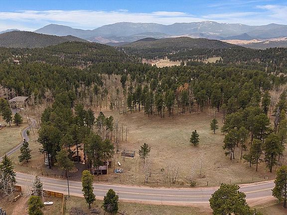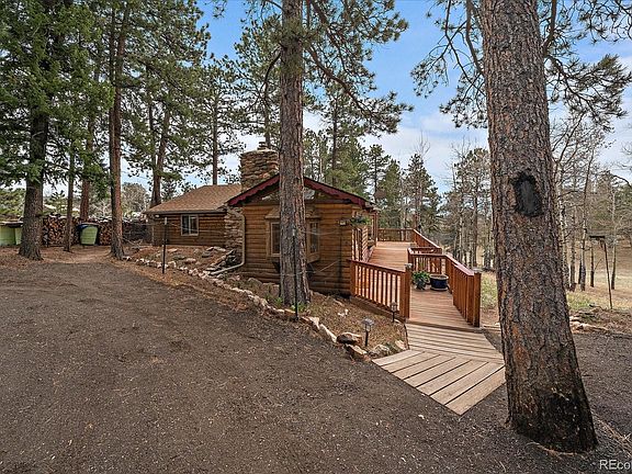 Welcome to your cozy mountain retreat! This charming log sided cabin offers the quintessential escape for those seeking tranquility amidst nature. Nestled on a beautiful 5-acre lot, this home invites you to experience the simplicity of cabin living with all the modern updates. The inviting open floor plan makes the most of its space, with a warm and welcoming main room that is perfect for relaxation or entertaining. This special cabin was thoughtfully renovated from top to bottom, including adding a Vermont Castings brick-lined wood stove set in the original stone chimney. Large gabled windows and French doors frame the lush, wooded surroundings, allowing natural light to fill the space and create a serene atmosphere. All newer appliances including a jet tub and stacked washer/dryer reside in the updated bright and sunny bathroom. Step outside onto the large deck and explore your expansive lot, where the possibilities for outdoor activities are endless. Views in sight of Pikes Peak, Cathedral Rock, and Windy Peak all from your piece of paradise. A garage with extra storage, bright workshop with separate entrance, and attic space for a fun playroom or bonus room set in perfect convenience to the cabin. Store all your toys in the 8x16 metal shed, garden in the greenhouse and fenced raised beds, and wander to the gazebo to take it all in. While just minutes from Hwy 285, whether you’re looking for a peaceful retreat or a base for adventure, this property promises a true mountain living experience.