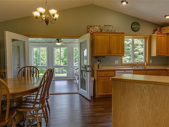 Well cared for home features 4 bedrooms and 2 full baths, finished lower level and 3 car insulated, heated attached garage. Updated 3 season room just off the dining area adds convenient main living area and looks over the huge backyard .Plenty of space for gardening and fun on this 5 acre property! House has been preinspected by Ideal Home Services, Well Water & Septic preinspected by H&H Plumbing and also includes a 12 month ShieldComplete home warranty by AHS!