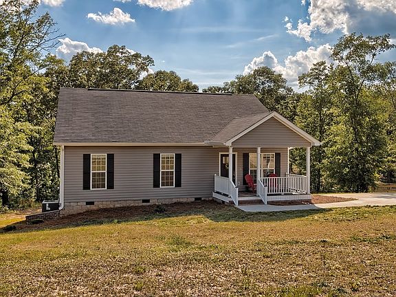 You don't want to miss this whimsical custom home in a country setting built in 2017. It features a beautiful open floor plan with 10 foot ceilings and very nice laminate flooring through-out living space. It also has a spacious Great Room with Fireplace. There is a large kitchen that contains a pantry, white cabinetry, and eat in dining area. French door leads to the backyard deck backing up to the woods and 1+ acres. Nice size owner suite, complete with walk-in closet and private bath with garden tub. Bedrooms 2 & 3 are spacious or great for office space. Have a seat on your sweet front porch to enjoy your morning coffee. This is a must see!