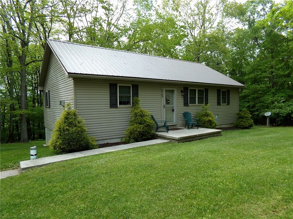 Ranch-style home built in 2014 and in like-new condition! Situated on 2.5 acres is this 2 bedroom, 3 bath home with semi-finished basement that could provide 2 additional bedrooms. There is also a loft that has been used for a sleeping area. Enjoy the summer weather on the private rear deck and in the winter relax by the propane "pot-belly" stove in the living room. The lower level has a storage area with overhead door. All contents of the home and shed are included if buyer desires.