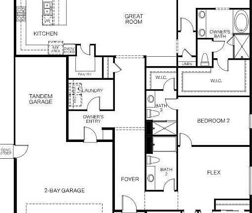 dream, with an abundance of gray cabinets and counter space, quartz countertops, a walk-in pantry, stainless steel appliances, and a stainless steel farm sink. Enjoy the large primary suite includes a luxurious bathroom and a spacious walk-in closet. This home also features a Junior Suite, a flex room that's perfect for a multi-purpose space and a 2-car plus large tandem garage with an 8' garage door.