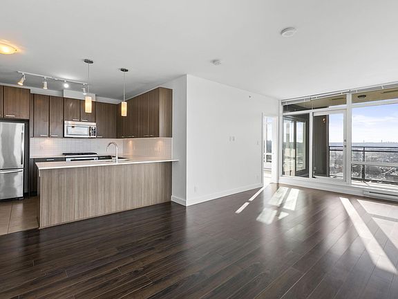 Welcome to "The Shaughnessy" at Lions Park - The ONLY concrete highrise in Port Coquitlam. This 19th floor CORNER unit has gorgeous South-West views. Spacious & bright with open-concept contemporary design. Kitchen complete with LARGE Island, Polished QUARTZ countertops, and Stainless Steel appliances . BONUS - GYM, Huge Rooftop Patio for residents to enjoy, Amenity lounge with full kitchen, Games/Yoga Room, Bike room, OnSite Caretaker. You are walking distance to EVERYTHING! Recreation, Schools, TRANSIT (Westcoast Express & Evergreen), Pet food stores (Bosleys), Save on Foods, restaurants + LOTS more. 1 parking. Rental and Pet friendly