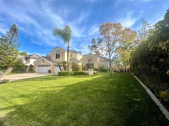 Prestigious Yorba Linda School district with views and spa pool! Master Suite down stairs gives a single level feel. Office can be convert back to a suite, connected to living room, oversized picture window in all downstairs rooms for the incredible views of mountains, pool, and neighborhood. Welcoming entrance with French doors, high ceiling with natural lights, open floor plan is great for family gathering. Kitchen comes with built in appliances, sub zero refrigerator, and center stove with new over the top contemporary range hood. pillow top travertine floor leads you to the private master suite with a vacation feeling. Two children or guest bedrooms with a loft on top floor, separated from downstair suites, give everyone a quiet and private space. the home is located in a quiet Cul de sac with wide frontage, one of the best neighborhood with Bryant Ranch Blue Ribbon award winning school, Travis Ranch middle school, and Yorba Linda High school to complete this package. Fresh painted exterior, garden is filled with love and taste, fully paid off solar system just installed for the new proud owner.