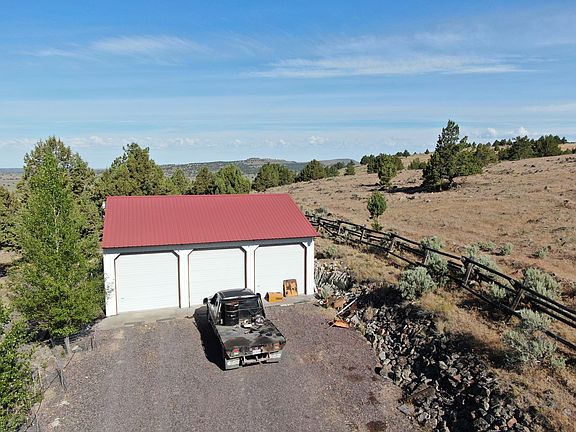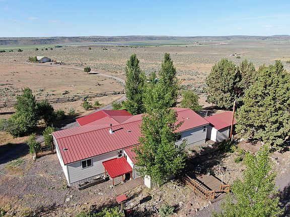 It is hard to describe the incredible views of the valley from the house which is nestled on a southern sloping hillside approx. 400' above the valley floor except that they are breathtaking. The land is in 3 tax lots and only 4 miles from town. The house has a large front deck with approx. 14' of it covered and a back deck area. The house was renovated with large windows just for the views from inside the house. The house is heated with EFA plus Central Air and a wood stove. The area around the house is nicely landscaped with fruit trees, rose bushes, ponds and a fenced front yard. All the trees and shrubs are on drip lines. There is also a great fenced garden area. The outbuildings are in great shape. The shop has concrete floors, power & shelving. The barn has power and water to it. This property is a rare find. This property has a wide variety of wild life including birds, coyotes, rabbits and it is a mule deer winter range area. Property qualifies for 2 LOP tags. LOCATION: 27897 Hwy 20 West, Hines Oregon ACREAGE: 317 +/- acres UTILITIES: Power (Harney Electric) Phone (Centurytel) WELLS: 1 - Domestic/Stock IMPROVEMENTS: 1 - 1988 Marlette MH, 3 bd, 1 ¾ bth with 1848 sq.ft. 1 - 36 x 28 pole barn/shop with 3 doors 1 - 48 x 36 barn/shop New in 2014 1 - pump house/wood storage 1 - garden/ storage shed TAXES: $1,624.33 (farm deferral)