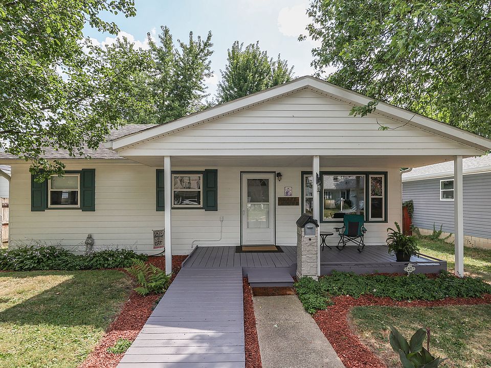 You will want to take a look at this 3 bedroom bungalow that is located in the heart of Greenwood. Walking distance to the park and the growing downtown area. This home is updated and move in ready; features include a beautiful front porch with handicap ramp, 1.5 bathrooms both are handicap accessible with grab bars, hardwood floors, ceiling fans, an updated kitchen with soft close drawers, double deep porcelain sink, blinds, vinyl windows, newer furnace and Water Heater and this is just the inside of the home. The back yard is fenced in and has 2 sheds, a screened in porch and a deck, butterfly garden, access to the ally and mature trees for privacy and shade. One of the sheds is a perfect workspace with a window AC, electricity, and is finished with a loft area for storage. This home is move in ready and in Greenwood Schools, take a look before it is gone.