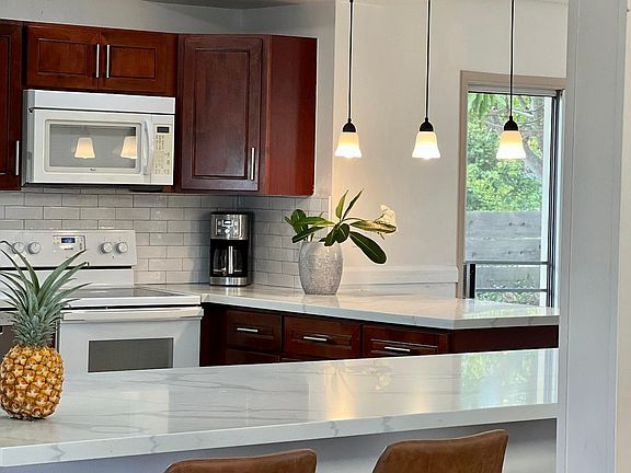 The newly remodeled, open floor plan kitchen Is amazing. There are water views from the kitchen, living room, and dining area. The new remodel with large and open views to the marina, gives this home an indoor / outdoor feeling. There a quarts counter tops, stainless steal refrigerator and dish washer. The vaulted living room ceiling, with high windows brings in all the sunlight to this amazing location in beautiful Hawaii Kai. You can walk to Safeway, Rite-aid, Costco and all kinds of fine dining and fast food restaurants. Only five minutes to Hawaii's treasured cove, Hanauma Bay. Enjoy a scenic eight minute drive to famous bodyboarding Sandy's beach. There are many golf courses and a beautiful driving range within minutes. Hawaii Kai is the perfect place to enjoy a few months in paradise.