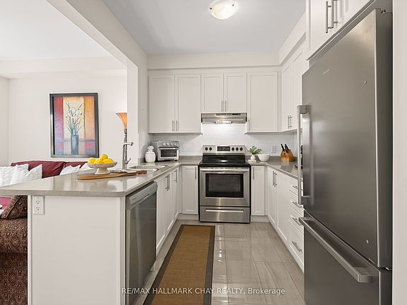 Welcome to this bright and inviting open-concept townhome, perfectly designed for modern living. The main floor offers 9ft ceilings and aseamless flow of living, dining, and kitchen space, ideal for both everyday life and entertaining. Convenient interior garage access makes coming and going a breeze. The home features three generously sized bedrooms, including a spacious primary suite with a walk-in closet and 3-pieceensuite. The primary bedroom overlooks the backyard green space, offering a peaceful retreat at the end of the day. The unfinished basement with a bathroom rough-in provides endless potential, whether you envision a recreation room, home gym, or additional living space. Step outside to your private backyard with no rear neighbours, where you'll find a cozy deck perfect for a morning coffee or BBQ, a lower patio, and a grassed area to enjoy. Located in a friendly neighbourhood perfect for families, this townhome is just a short distance from the quaint downtown of Stayner. It is conveniently surrounded by parks, schools, and everyday essentials, making it a great place to move in and start enjoying right away. (A/C 2021, Fridge 2024, Patio 2025)