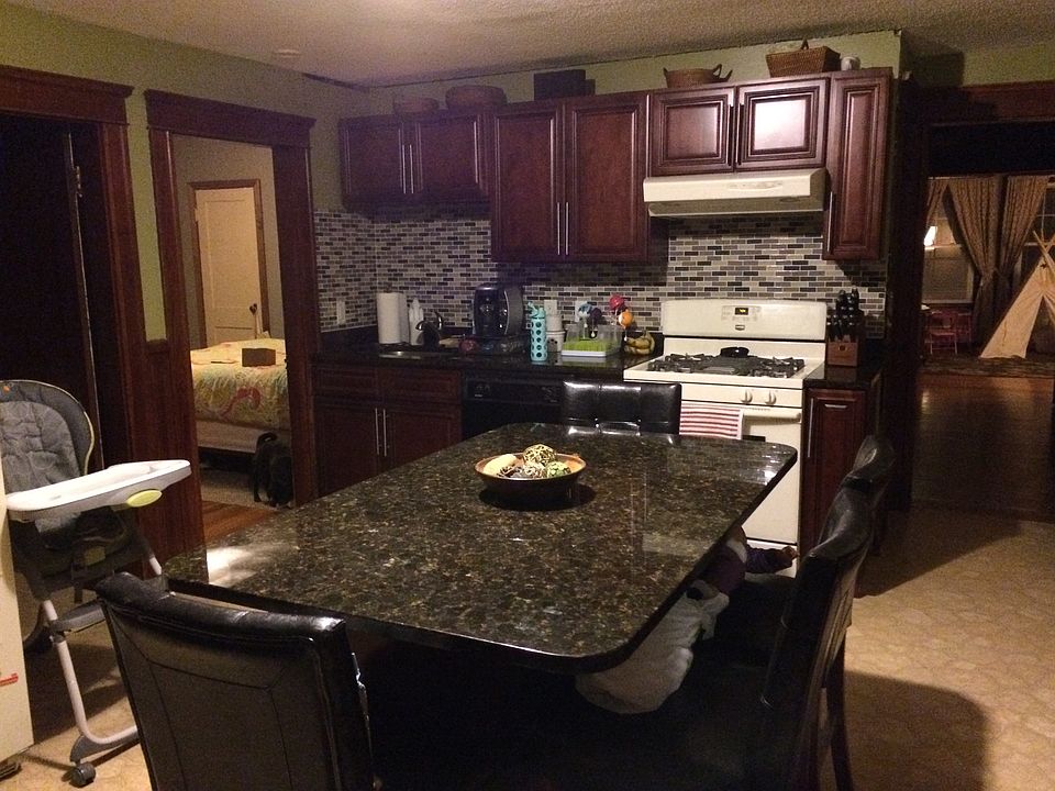 Spacious, airy three-bedroom apartment with granite countertops, vanity, and kitchen island. Newly refinished bathroom and bedrooms, laundry in-unit, hardwoods throughout. Dishwasher, washer/dryer, refrigerator included. Plenty of dry basement storage and driveway parking. Large yard on extra lot. Brand new, energy-efficient gas heating system. Directly across from Globe Park. A must-see! Call/text at 401-829-0602 to set up a showing. Available March 1, 2016. Tenant responsible for utilities, maintenance.