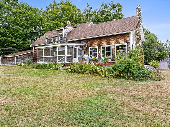 This circa-1840s farmhouse has been lovingly cared for by the same owner for more than 50 years. This classic 3-4 bedroom/2 bath cape-style home sits on 8 peaceful acres of lawn, gardens, and open field. You'll find original features throughout the home from pumpkin pine floors and antique hardware to a folk-art floor painting, custom built-ins and more. The first floor includes a library/office, kitchen, dining room, and living room with a stone fireplace built from unique stones found on the property. A downstairs bedroom, full bath and laundry offer opportunity for one-level living if desired. Upstairs, you'll find three more bedrooms, a full bath and large walk-in storage closet. Enjoy quiet afternoons on the screen porch overlooking the private back yard with white lilacs planted in 1880, fruit trees, flower gardens and stone walls. Majestic shade trees in the front yard will help keep you cool all summer long. Modern features include an automatic generator, updated propane heating, internet access, and attached garage with automatic door openers. Just across the road, a large historic wood-pegged barn provides plenty of storage for all your toys or equipment and great potential for farming. There's so much opportunity here – from farming and outdoor recreation to work-from-home or an easy commute, or a retirement that will bring you back to the days of a simpler life. Located between Central Maine and the Mid-coast, it's an easy thirty-minute drive to Waterville, Augusta or Belfast and Bangor is just over an hour away. Enjoy year-round recreation at Lake St. George State Park, Just 3 miles away and on Sheepscot Lake via the state-owned boat launch nearby. Come make this beautiful home and community your own!