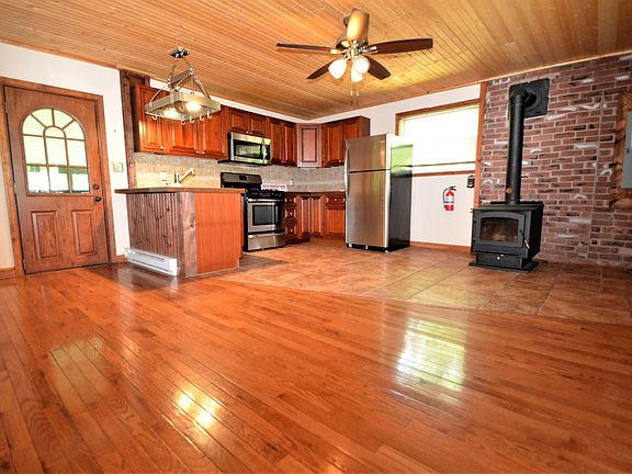 Secluded Log Cabin set on a half-acre of land in Bear Creek Dairy, Jim Thorpe! Enter this 2 BR 1 full bath cabin into a beautifully renovated kitchen w/ Cherry cabinets, ss appliances & a gas stove. Stay warm by the propane stove that can heat the whole first level. There's 2 carpeted bedrooms & an updated bath. One of the upstairs bedrooms features gorgeous wood beam ceilings & custom made wood closets for storage. Relax on the front and back covered porches overlooking a wooded lot. There's plenty of parking spaces for when company comes over. Call today to schedule an appointment! Property is owned by a PA Licensed Real Estate Agent.