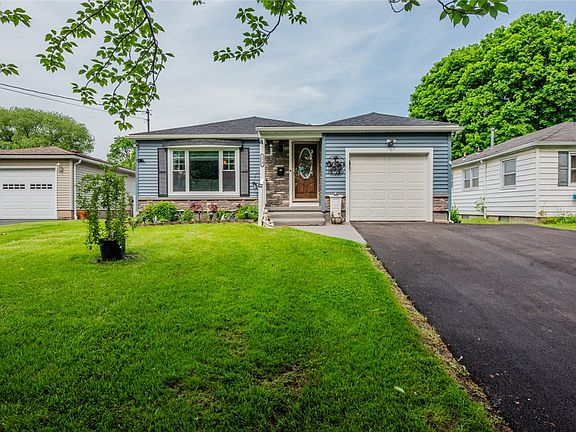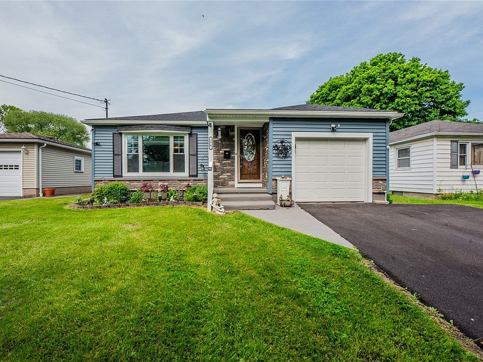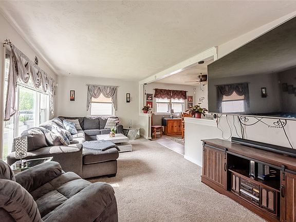Welcome home to this move in ready Ranch! 2 large bdrms w/ 1.5 baths. Enjoy a nice large open floor plan on the main floor! This home has multiple major nice updates in 2023: Tear off roof, new gutters, siding, driveway (now double wide), & many vinyl windows! Currently has 100 amp service with brand new can lights in the partially finished basement. Central air & furnace cleaned & serviced in Fall 2023. All appliances were purchased in 2023 & remain in as-is condition. Security system & cameras to remain. Carpet & vinyl flooring newly installed (23). Glass block window in the partially finished basement as well as a 1/2 bath. TONS of storage in this large basement! This property has a HUGE backyard with a new shed & gazebo (23). Electric fireplace remains. 1.5 attached car garage w/ opener. Curtains & blinds remain. Large front door entry w/ coat closet. Enjoy the sun room off the kitchen with an exit to the paver patio which is great for grilling. During the summer months you can sit on the deck in the rear of the house overlooking the large back yard. All offers due Thurs, 5/30 @ 7 pm. Allow 24 hours to review offer.