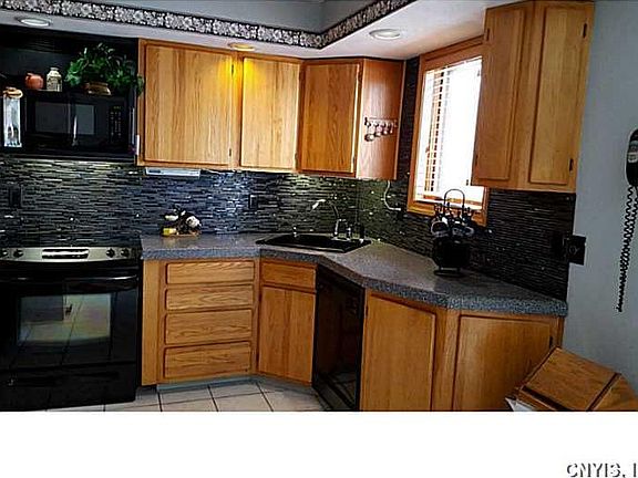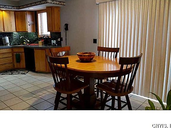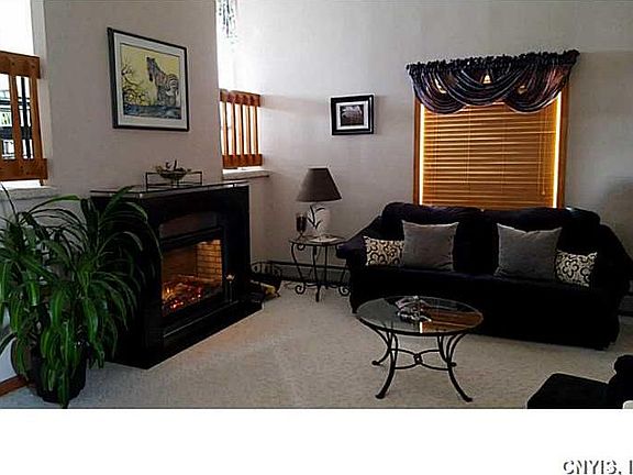 Striking contemporary on 2+ acres, 3 mins to I 481, 12 mins to Great Northern Mall, and only a half-mile from the Oswego County Recreational Trail. Quality throughout this home, which marries comfort with contemporary flair. Open, airy, and bright, with vaulted ceilings and lots of natural light. Beautifully maintained, with modern decor and higher-end finishes. Spa bath features deep soaking tub and separate shower. Updated kitchen/dining overlooks graceful grounds and dramatic family room. Fourth bedroom/full bath in fully-finished basement. New exterior doors/windows. Roof only 5 years old.