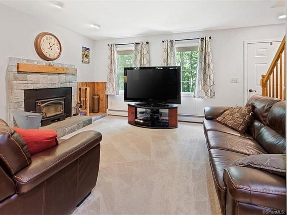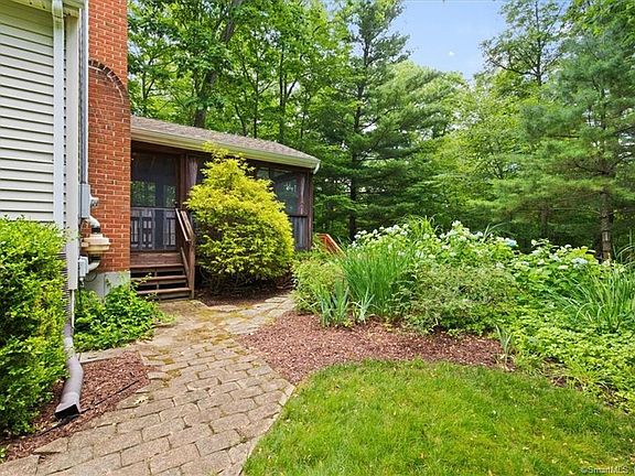This well maintained 3-bedroom, 2 bath Cape is nestled in a peaceful, retreat like setting with professional landscaping, sitting on over one and a half acres, it's an absolute must see The main floor features an inviting living room with fireplace, an open floorplan kitchen with eat in island and dining area, a bedroom and full bathroom with laundry. French doors in the kitchen lead to a fully screened in porch with high ceilings and ceiling fans. Off of the screened porch you will find a large deck, perfect for outdoor relaxation and entertaining. Upper-level features two light filled bedrooms and a full bath. Attached to the home is a large one car garage with an automatic garage door. This home offers plenty of room for storage in the full basement as well as an outdoor shed perfect for gardening and lawncare supplies. In addition to these great features, there is also a woodworking shop with a standard entry door and a large sliding barn door. Attached to the workshop is a carport for additional sheltered parking or could also be used to store wood for the fireplace. Be sure to check out this home, just minutes away from town and walking distance to Bulkeley Hill Preserve