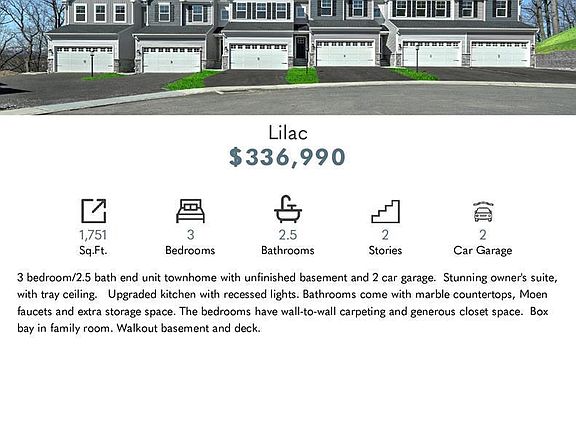 NEW CONSTRUCTION - PROJECTED SETTLEMENT AUGUST/SEPTEMBER 2022. 3 bed/2.5 bath townhome with unfinished basement and 2 car garage. Stunning owner's suite and builder upgraded kitchen. Marble countertops in baths, Moen faucets, loads of extra storage and generous closet space.