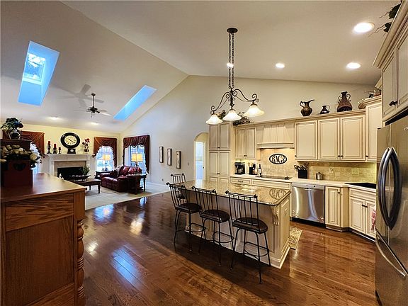 Stunning! Expertly-designed elegantly-appointed luxury villa showcasing 1670sqft of attentively customized space nestled on a lush park-like perimeter lot in the premiere Rose Hill development, the newest upscale community. Commanding concrete drive & neat meticulous landscape greet and escort to the handsome hard-wood underscored entry which promptly transitions to the dramatic steeply-cathedraled 18' sundrenched GR anchored by gas fireplace, and illuminated by exaggerated skylights & wall-of-windows that invite the outdoors in. Adjoining glass enclosed sunroom freely expands to the intimate outdoor oasis of paver patio, stacked stone wall, fountain, and lush backdrop. Sleek amenity-rich gourmet-ready kit boasts abundant upgraded glazed-maple cabinets, ss appl, & exaggerated granite serving/prep/eating peninsula. Soaring trayed DR, sensationally sized MBR w/serene spa-inspired ceramic-clad Bath, den/3rdBR, concurrent arched entries, rich hued HW, ready-to-fin insulated bsmnt w/3rdBA