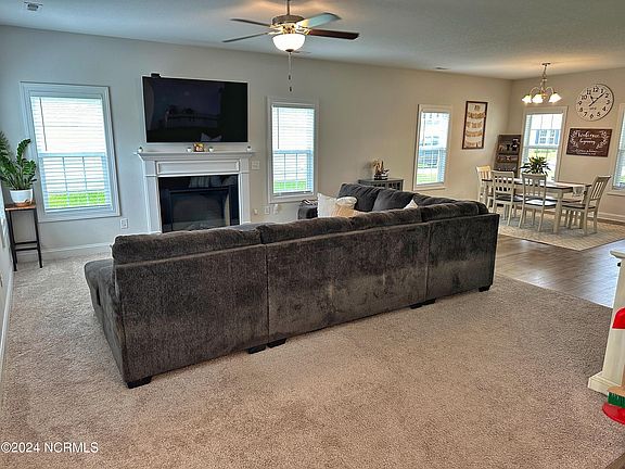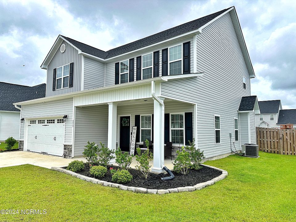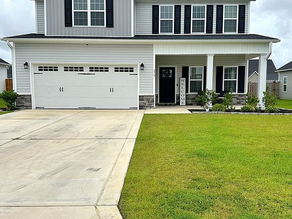 Welcome to 279 Crossroads Store Dr., a stunning 2-story home located in the desirable Onslow Bay subdivision of Jacksonville, NC. Built in 2022, this modern residence offers 4 spacious bedrooms and 2.5 bathrooms, perfect for families of all sizes. The open-concept living area is ideal for entertaining, featuring a contemporary kitchen with stainless steel appliances and ample counter space.