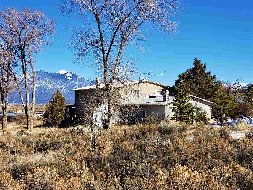 A lot of square footage for the money, and 1.87 acres! Mature trees, large yard with garages in a rural area. Unobstructed Taos Mountain View. Nice vigas in some of the rooms, needs some updating. This could be your next project... with room to expand. Seller is motivated.