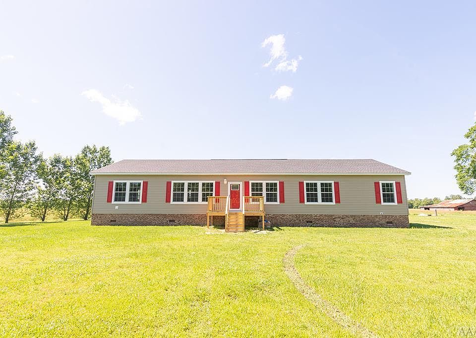 This 2005 modular home is almost like brand new! Home has a new roof, new HVAC, new flooring, and brand new stainless steel appliances. Home has 4 bedrooms, 2 bathrooms, living room, kitchen, and a large great room. Brand new deck on the back of the home offers lovely country views of farmland. This location offers great country living, but located close to a community store, trash dump site, and a short drive to Elizabeth City.