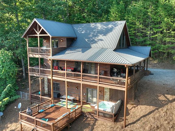 Aska Adventure Area G Year-Round Mountain Views G Expansive Outdoor Spaces on 3.41 Acres of Privacy! Three Levels of Covered Porches to Enjoy the Amazing North Georgia Climate and Mountain Views. 4 Bedrooms, 3 Baths, 2 Livings Areas, and Lots of Spaces Both Inside and Out to Relax and Gear Down. Vaulted Cathedral Ceiling Main Level Features a Great Room with Gas Log Fireplace, Big Kitchen Island with Barstool Seating, Dining Area, Bedroom and Bath/Laundry, Plus a Wrap-Around Porch for Grilling, Dining, and Taking in the Serene Mountain Views. Open Floor Plan Stairs Lead Up to Two Bedrooms, Bathroom, and a Covered Observation Porch. Terrace Level is Finished with Den, Fireplace, Wet Bar, Game Area, Bedroom and Bath. In Addition, Access to Another Large Covered Outdoor Patio Featuring a Hot Tub, and, an Open-Air Deck with Chiminea for Cool Evenings. Mountain Lifestyle and Aska Adventure Area are Synonymous G Walk to Benton MacKaye Trail at Fall Branch Falls, Tube and Fish the Toccoa, Yet Only Minutes to Blue Ridge for Eats and Shop! Home is Being Sold Furnished, Turnkey for Short Term Rental or Immediate Occupancy. The Gentle Driveway Provides Level Ample Parking, a Firepit, and Even a Place for a Game of Cornhole. Ready for the Blue Ridge Mountain Experience? Call Today!