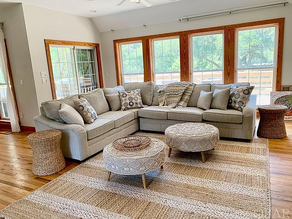 Nestled among the mature live oaks, this one is truly a hidden gem! This one-of-a-kind property is a turnkey rental sold fully furnished, with rental projections over $100,000. Each of the spacious seven bedrooms has its own bathrooms. The spacious great room opens to beautiful decks on the back and a charming covered front porch. There are tons of large windows to maximize the natural light. The kitchen is fit for a chef with two dishwashers, granite countertops, custom cabinetry, a stylish farm sink, and incredible storage. Lots of spaces for the entire family to spread out including a bonus room on the ground level. Located in arguably one of the most beautiful areas of the Outer Banks, Southern Shores offers many natural common areas to explore, private beach accesses, a sound beach, and a marina. Join the tennis club and have access to the tennis and Pickleball courts located nearby. The home has undergone an extensive renovation over the past two years, including the following updates: Added concrete pad under the back deck, New deck in the rear of the house, entire house painted, new hot tub, ceilings covered on decks with white vinyl, lower level deck metal ceiling, new septic system, New HVAC unit in 2023, (2nd one was replaced in 2018), new range, mostly new furniture, kitchen cabinets painted, replaced all bedding and mattresses, 2 new washers and two new dryers, both dishwashers were replaced in 2021, New hot water heater in 2020, new refrigerator in 2021,