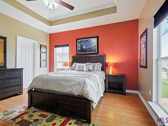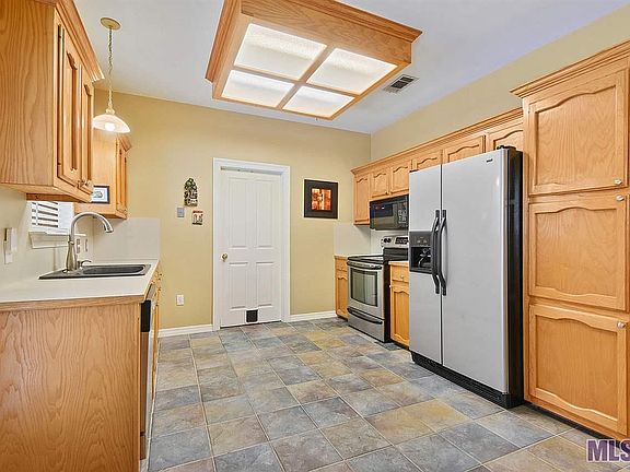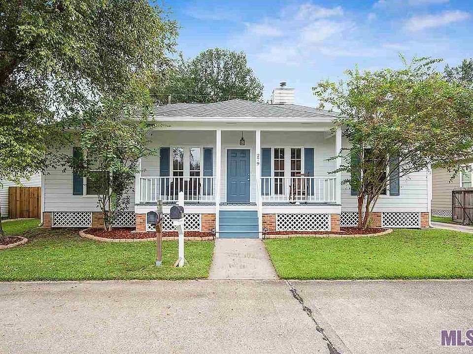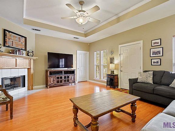 Charming, clean, bright home nestled in 70810 only 6 miles from LSU--in other words--- LOCATION, LOCATION, LOCATION!! Home has never flooded and qualifies for 100% RD financing. Well-maintained and move-in ready. Ideal for a family of any size OR investors. Fresh and welcoming exterior paint colors and LARGE front and back porches. Easy to care for, appealing landscaping & gutters installed all around! 2-vehicle REAR covered parking, outside storage, security cameras (can remain), PRIVACY FENCE with gated access, and NEW ROOF. Spacious, functional living room (with a fireplace) & kitchen areas. There is no carpet in this home. You will find storage in every room including the bathrooms. Master bedroom has built-in shelving, vaulted ceiling, and generously accommodates a King-size bedroom suite; walk-in closet and dual vanities featured in the Master Bathroom. Spare bedrooms have large closets and ceiling fans and pretty paint. You'll enjoy this home in ALL seasons and weather because both the inside and exterior areas were smartly planned and thought out. This one is a gem and will not last long. Call today.