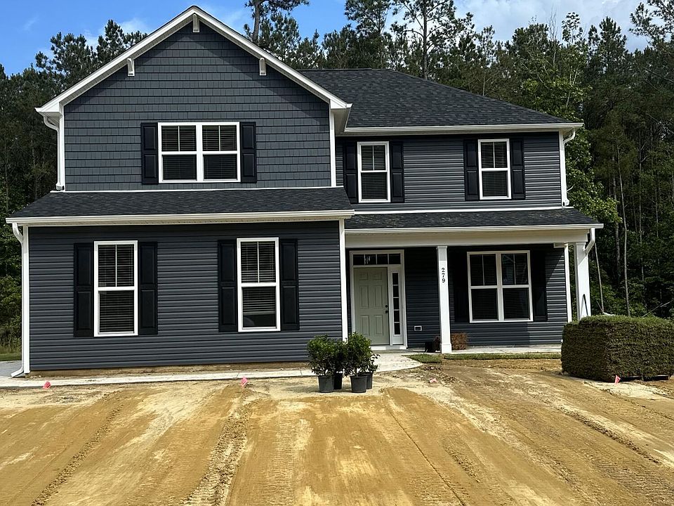 The spacious 3 bedroom, 2.5 bath ''Mt. Vernon'' by Stevens Fine Homes offers a formal dining room, flexible upstairs family room, a rear covered porch, finished two-car garage with a side entry, providing a lovely front aesthetic to the home, and an open floor plan ideal for entertaining. Situated on a lovely tree-lined homesite measuring almost half of an acre, this new construction is estimated to be complete in May, 2024. The large kitchen features stunning ''designer white'' quartz countertops, soft-close shaker-style cabinetry in a lovely light ''billow'' gray finish accented with oil rubbed bronze hardware, a subway tile backsplash, a lighted pantry, stainless steel Frigidaire appliances, Moen oil rubbed bronze plumbing fixtures, and more. The bright breakfast area lends access to the rear covered patio with ceiling fan, overlooking the peaceful, treelined back yard, while the spacious great room and formal dining room offer the perfect space to entertain. A convenient powder bath completes the first floor. Upstairs, you'll find a relaxing primary suite with a trey ceiling, attached bath with a double vanity with quartz countertops, a walk-in shower, 12x24 tile flooring, two linen closets & an oversized walk-in closet. Two secondary bedrooms, a well-appointed guest bath, a laundry room and a spacious, flexible family room complete the second floor. Designer finishes include nine-foot ceilings and luxury vinyl plank flooring throughout the first-floor, elevated oil rubbed bronze lighting fixtures & hardware, thoughtful trim details, exterior coach and flood lights, and more!
