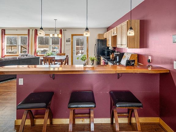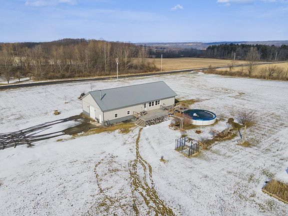 This exceptional property on 53 acres offers a beautifully maintained one level home and comes complete with a flow-through living/dining area. This is an all electric home, perfect for solar panel install! A thoughtfully designed kitchen, which contains an electric oven and laminate countertops and opens to the great room with a cozy pellet stove. The generous primary suite is an oasis of peace and relaxation and features a low-maintenance bathroom and closet . Adding to the home's charm are well-maintained laminate floors throughout the main living spaces. Enjoy a country atmosphere in the sprawling backyard with a large deck and above-ground pool. A wonderful space for fun. Ideally positioned in an idyllic section of Enfield. See for yourself why people love this rural community. Utilize the oversized 2-car attached garage. Be prepared for 'love at first sight'.