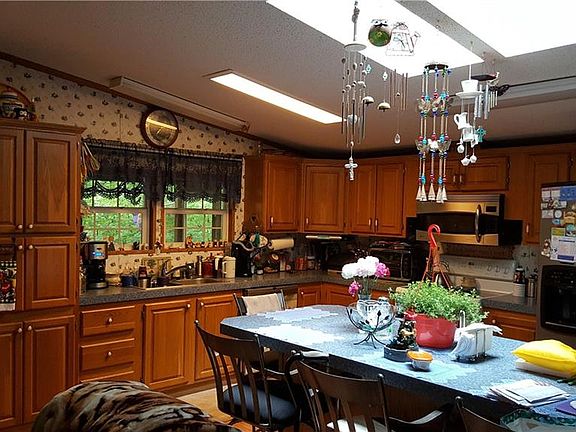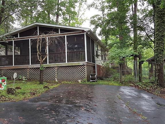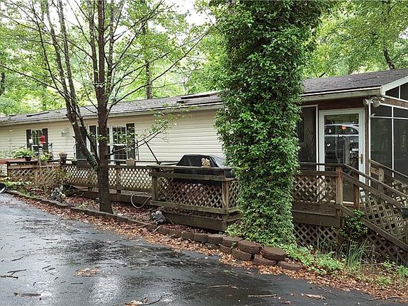 Spacious double-wide nestled on 4+ acres of wooded land. Fenced area for pets, small grassy area for roaming. 3 bed, 2 bath. Master suite with huge master bath containing garden tub and separate shower. Tons of storage space! Open kitchen with island open to den with gas log fireplace. Screened porch with serene view of drive. Separate living room along side formal dining room. Storage buildings, carport awning and gazebo stay along with gas grill!
