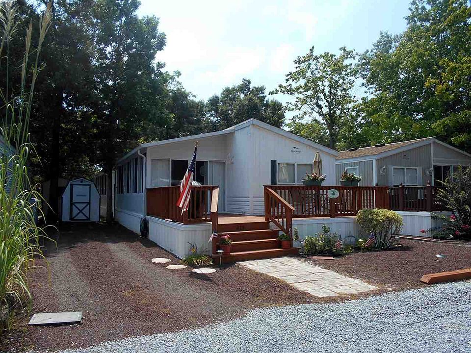 Beautiful 1995 maintenance free two bedroom Breckenridge loaded with wonderful features: It comes fully furnished, has a Brand New, Fall of 2019 Central Air /Heating system, beautiful wood laminate flooring, newer roof, new bedding. a nice size Florida room with cathedral ceilings, spacious front deck, storage building, and it's situated on a dynamite street. All this with Boating & Fishing, Pond w/Sandy Beach, tons of activities, 2 Pools (one just for Toddlers) , Club House, 2 Bath houses and on-site management in a gated community. Great price for this model - and on Longport Avenue too - Don't miss it