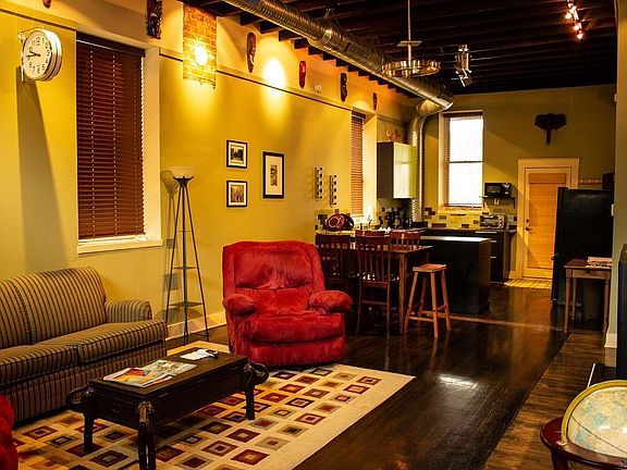 Beautiful stone building on Main St., in the heart of Lansing. This building is currently used as a very successful short term rental and sleeps 8-10 people. Ready for your full time home or continue on as a rental. This 2 bed, 2 1/2 bath home comes furnished and was renovated in 2008. A few of the renovations include new electrical, plumbing, and windows. The basement was renovated in 2015 and is set up for in floor heat. This building has 2 hvac systems, 2 story deck with great views of the river, concrete patio, private parking and a fenced in back yard. With 3 beautifully finished levels, it's easy to have a business in part of it with plenty of room to live in the rest. This building comes fully furnished.