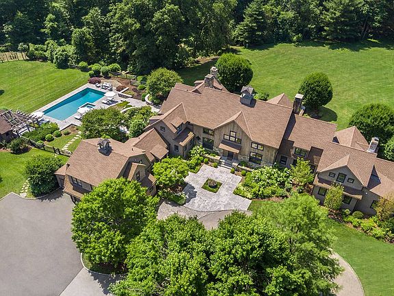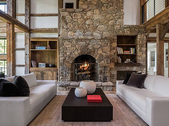 Poised on 13 spectacular acres along the Aspetuck River, Seagram's Creek represents one of the largest & most beautiful estates in Westport. Acclaimed architect Michael Greenberg was inspired by an antique chestnut barn in neighboring Weston, moving it to its current location where it continues to serve as the home's stately muse. Once the country estate of Seagram CEO and philanthropist Edgar Bronfman Sr., the current owners renovated the home in 2017, bringing in top interior designer Meg Sharpe to infuse a light and modern aesthetic into the home's original vision. Six native stone fireplaces illuminate antique hand-hewn beams and reclaimed wood elements throughout captivating living spaces filled with exquisite details and historic character. Outside, a spectacular honed marble terraces, pool, pool house, tennis court and artist studio are embraced by lush gardens and rolling lawns. Follow the sylvan walking trails to 750' of tranquil riverfront to experience blissful moments at the water's edge. A true showpiece!