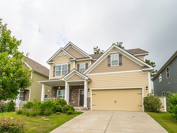 Two story home filled with southern charm and tucked away on a quaint street in Cobblestone Park. Formal dining with coffered ceiling, office, or music room leads you into the kitchen with granite counters, stained cabinets, SS appliances, pantry, bar, and eat in area overlooking great room with fireplace. Mud room on first floor as you come in from the garage. Oversized master with his and her closets, private bath, separate shower, garden tub, double vanity. Upstairs is a large loft perfect for a playroom or man cave. Three other bedrooms in addition to the master. Fully fenced large, flat backyard, tankless hot water heater. Located in a gated golf community, this is resort living at its best. HOA fee includes community pool, gym, fitness center, locker rooms, catering kitchen and tennis courts. All of this situated around a 27 hole golf course with club house, practice facility, and driving range.