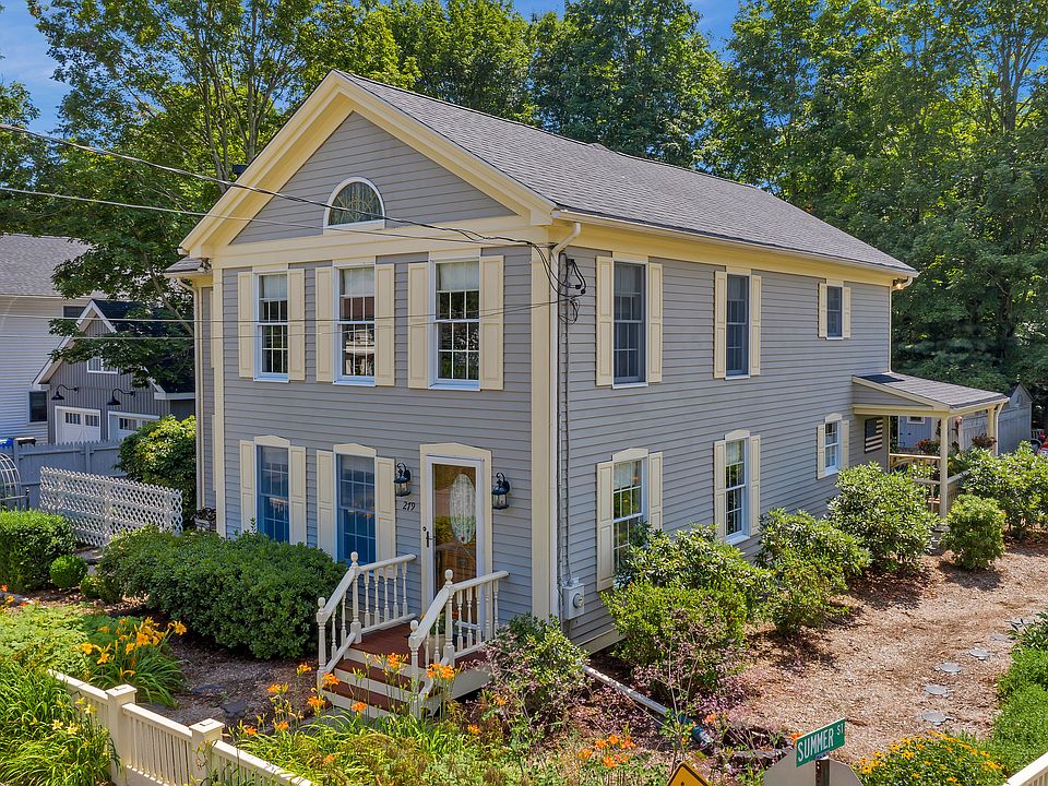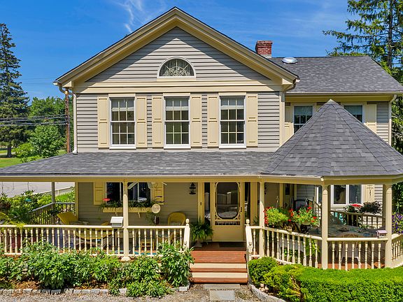 Charming historic home located in downtown Guilford! Walk to train, beach, restaurants, library, shops and so much more! Home built in 1871 but purchased by current owners in 1989 and completely remodeled from the studs in. They replaced insulation, plumbing, electrical and re built the entire inside of the home! A wrap around covered porch greets you from the driveway. With ceiling fans, wicker furniture, wood flooring and colorful plantings. This porch over looks a pond with moving water and beautiful garden area. The first floor offers Kitchen with wood cabinetry and wood counters , along with Stainless steel appliances. There is a formal Dining room with fireplace, a parlor room in the front of the house, front foyer with bench seat and double coat closets and in 2000 an addition was put on to add a family room on the first floor with a gas fireplace. The main floor has a 1/2 bathroom and there is a full basement below. The upper level offers a very generous sized Master bedroom, with walk in closet, large windows to allow much light into the room, a full bathroom with shower stall, Jacuzzi tube and access to the walk up attic. There are 2 other bedrooms on this floor, one with its own bathroom attached . The other does not have access except through the bedroom. Home offers Central A/C which is 10 years old, portable generator hook up, hot water heater was installed 2018,roof if about 4 years young. Please VIEW FLOOR PLANS and See UPPER LEVEL LAYOUT.