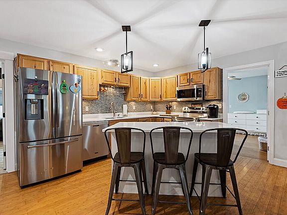Enjoy the convenience and efficiency of open concept, one floor living in this 3 bedroom, 2.5 bath home. This ~1500 square foot home sits on .63 acres, has public water, private sewer, has a detached 4 car heated garage, a 6 car paved driveway, and a 14x16 foot shed with second driveway access from the road.