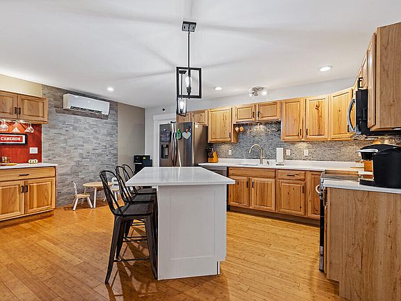The kitchen has also seen updates, including the white quartz countertops, custom culture stone backsplash, large island and Stainless steel appliances, all new in 2022.