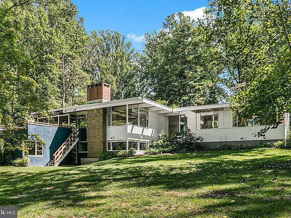A stunning example of true mid-century modern architecture, 279 Ridgeview Road is characterized by clean lines, large windows and an open floor plan where indoor and outdoor living spaces perfectly complement each other. Set back nicely from the road and tucked out of sight from passersby, this Thaddeus Longstreth designed home is enveloped in privacy and nature amid four acres of verdant lawns and mature trees, creating the perfect habitat for those who want to surround themselves in both natural and architectural beauty. Enter to hardwood floors, crisp white walls and large expanses of glass that bring the outdoors in at every turn. The living room takes center stage on the main level, with a planked wood ceiling with beams and overhead lighting adding texture and dimension. A fireplace provides a focal point and corner wrapped windows to either side provide a spectacular backdrop to any occasion. The open concept dining room and kitchen are bright, functional spaces that each flow to outdoor spaces - the kitchen to a bluestone patio courtyard and the dining room to a screened-in porch that leads to the open air deck. The kitchen has hardwood floors with radiant heat; a SubZero refrigerator; Blue Star double oven, range and grill top; Best oven hood; Miele dishwasher and two Marvel wine coolers. A powder room and laundry room are just off the kitchen. The main level houses the owner’s wing where a skylit hall behind a privacy door leads to an opulent primary bathroom featuring a shower with rain shower head, handheld shower and three massage showerheads, double sinks with Grohe faucets and a freestanding soaking tub. Across the hall, the owner’s suite has a built-in desk/vanity and dresser and California Closet organizers. Completing the owner’s wing is a cozy TV/Sitting Room/Den & an office with built-in L-shaped desk with room for two. This fabulous space will make any work from home day a pleasure, with beautiful wooded views of the backyard from a large window that wraps around the corner and onto the perpendicular wall, giving the illusion of working outdoors. The lower level is home to three bedrooms that share a newly remodeled full bath with custom cabinetry, a family room with fireplace, a fabulous additional office space with built-in desktop, and a large storage room. The oversized garage fits three cars. The partially wooded four-plus acres is a nature lover’s dream, with trails to wander and explore at your leisure. Close to area schools and all Princeton has to offer. This home is a must see!